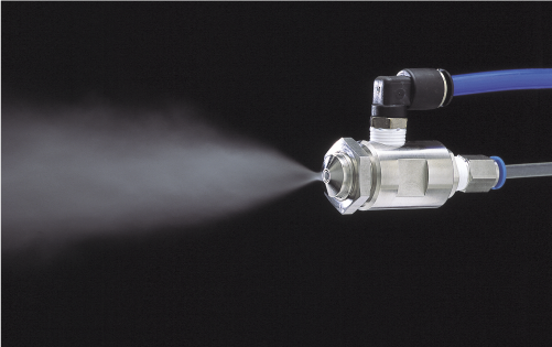 独自技術により圧縮空気の使用量を削減。さらに自吸機能で、低粘度液ならポンプなしでの噴霧も可能です。